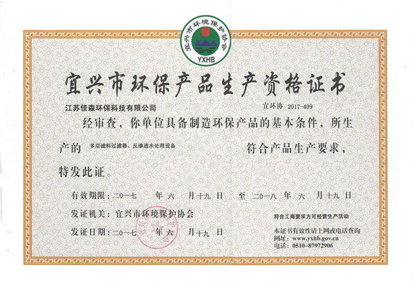 佳森生产资格证(过滤器、反渗透)